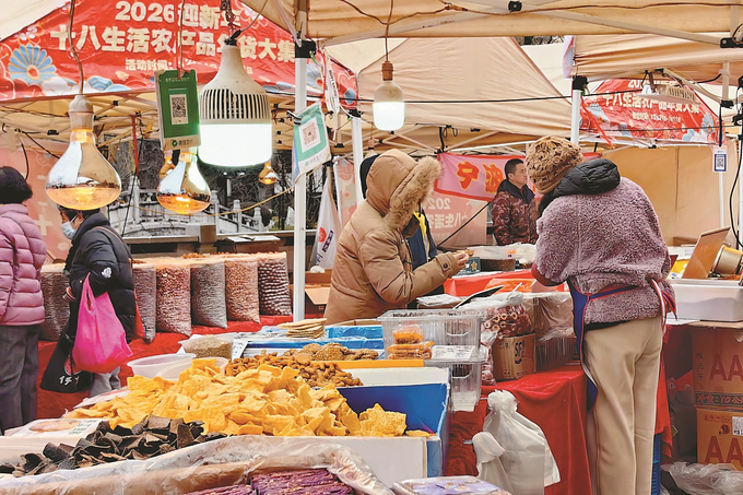 一年一度的南京莫愁湖农产品年货大集,近日在景区西侧广场举行。本次大集汇聚南京本地及周边地区的优质农产品,为市民提供一个集中采购年货的便利平台。图为昨日,市民正在购置农产品。 本报记者 刘莉 摄