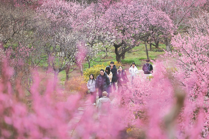 2月25日,素有“天下第一梅山”美誉的南京明孝陵梅花山迎来盛花期。漫山梅花姹紫嫣红,竞相绽放,吸引众多市民与游客纷至沓来,赏花拍照。 本报记者 蒋文超 摄