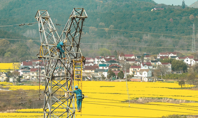 南京石臼湖畔的220千伏淳古线完成一次“精准换骨”,近日以全新姿态回归。220千伏淳古双线是高淳电网东西部环网的重要联络通道。施工人员在原直线塔附近选址新建两基耐张塔,通过“空中接力”实现导线不落地移用,导线移用后再拆除原直线塔,在空中为导线稳稳“搬家”。自2012年投运以来,这条全长12千米的大动脉始终默默守护着高淳的万家灯火。 罗安国 摄 (视觉江苏网供图)