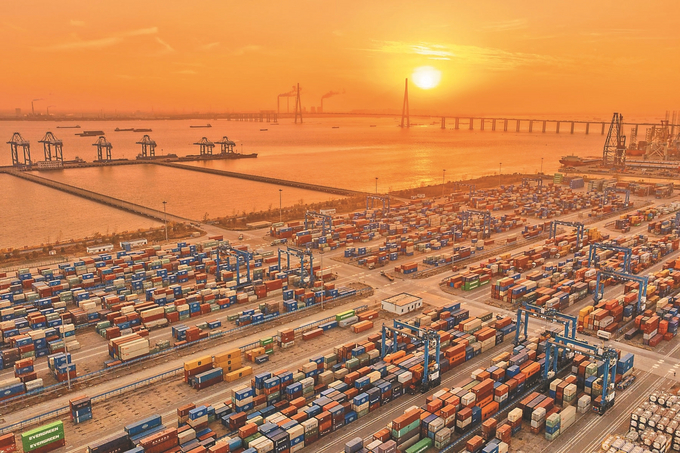 据南通海关统计,2025年前11个月,南通全市外贸进出口4037.6亿元人民币,超过去年全年水平,并首次突破4000亿元大关。图为日前拍摄的南通港通海港区集装箱码头。许丛军 摄 (视觉江苏网供图)