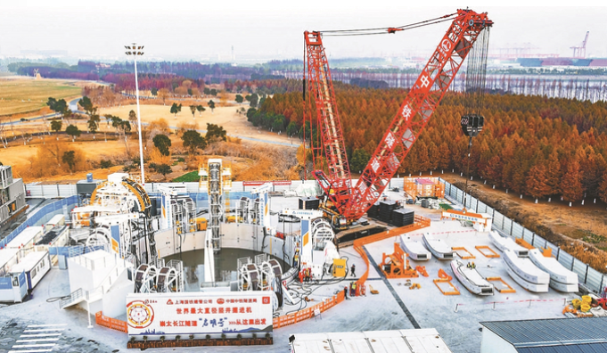 1月13日,我国自主研制的世界最大直径竖井掘进机“启明号”在太仓市始发,投入崇太长江隧道二号竖井建设,开创我国高速铁路竖井采用掘进机施工的新纪元。 计海新 摄 (视觉江苏网供图)