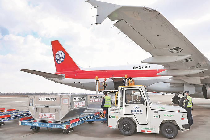 一月二十一日,一架搭载工业新材料的国际全货机抵达南通。在南通海关支持下,南通兴东国际机场以“空空中转”模式开展保障,全程操作时间压缩一半,大大提高了企业的国际物流效率。许丛军 摄 (视觉江苏网供图)