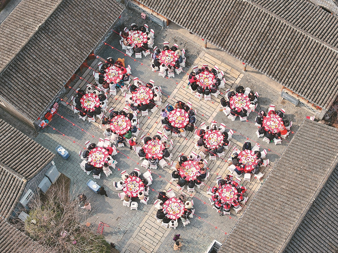 昨日,南通市第二届唐闸“共飨宴”正式开席。市民们围坐圆桌,在热气腾腾的美食佳肴中,与家人好友或新结识的伙伴,共享一顿充满人情味的团圆饭。 钱咸华 摄 (视觉江苏网供图)