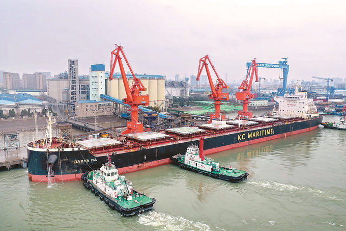 3月15日,装载6万吨加拿大进口大麦的“达雅马”轮顺利靠泊南通粮油码头。该轮吃水11.9米,为该码头今年最大吃水进口粮食船舶。作为长江干线重要粮食集散地,南通粮油码头承担着区域粮食进口、集散关键职能。 许丛军 摄(视觉江苏网供图)
