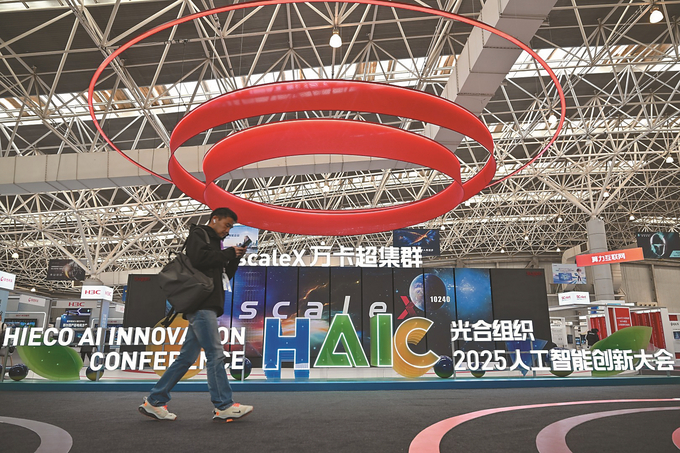 12月17日,光合组织2025人工智能创新大会在昆山国际会展中心开幕。大会集中展示从底层技术到上层应用的完整链条,AI计算技术、产品、应用与生态的诸多前沿成果集中亮相,来自国内外2500家企业的4000多位嘉宾携最新成果参展。 张从余 摄 (视觉江苏网供图)