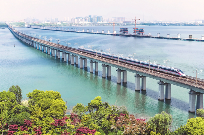 4月19日,苏州通苏嘉甬高铁建设有序推进,阳澄湖段生态保护效果显著。施工全过程严守生态管控要求,实现湖区水质稳定向好、生物多样性不受扰动、施工全程零污染投诉,成功打造高铁跨湖施工生态示范样板。 孔繁立 摄 (视觉江苏网供图)