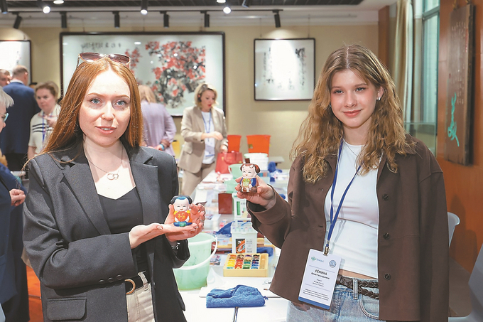 4月8日,近30位来自俄罗斯莫斯科州的教育工作者走进无锡市湖滨中学,参观了解版画作品、体验非遗惠山泥人上彩等传统文化项目,感受中华优秀传统文化的精髓和魅力。 朱吉鹏 摄(视觉江苏网供图)