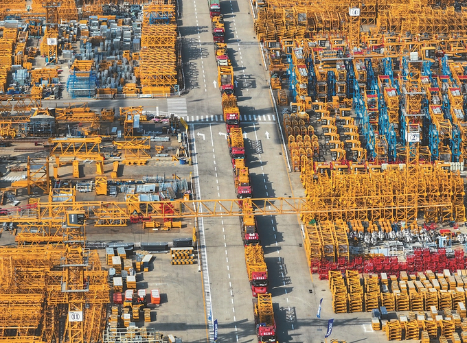 2月18日,位于徐州经开区的徐州建机工程机械有限公司一派繁忙,机械产品正在被有序装车外运,奋力冲刺首季“开门红”。 高刚 摄 (视觉江苏网供图)