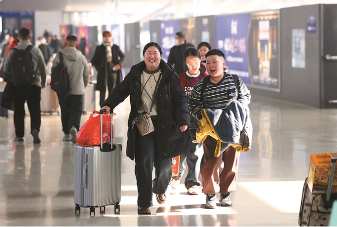 随着春节临近,铁路春运进入节前客流高峰。图为2月11日,旅客在徐州东站乘车出行。本报记者 陈俨 摄
