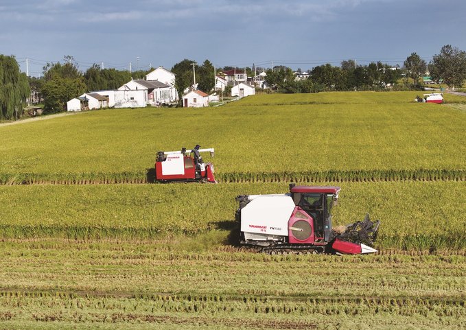 10月23日下午,位于盐城市盐都区大冈镇的扬帆家庭农场289亩水稻开始收割。近期天气晴好,有利于水稻后期成熟与收割工作的开展。盐都区45.91万亩水稻当天开始全面收割。 周晨阳 摄