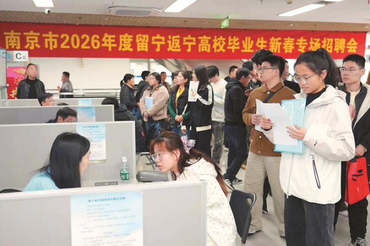 2月22日下午,南京新春才市首场招聘会——2026年度“春风行动”留宁返宁高校毕业生专场招聘活动火爆开场。2000个岗位吸引了众多高校毕业生进场求职,收到简历近2500份。