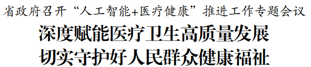 2月24日,省政府召开“人工智能+医疗健康”推进工作专题会议,深入学习贯彻习近平总书记关于人工智能发展和健康中国建设的重要论述,全面落实党中央、国务院关于“人工智能+”决策部署,按照省委工作要求,促进人工智能在医疗卫生领域的规范应用,创新开展预防、诊疗、康复、健康管理等全链条智能服务,更好满足人民群众日益增长的健康服务需求。省长刘小涛主持会议并讲话。