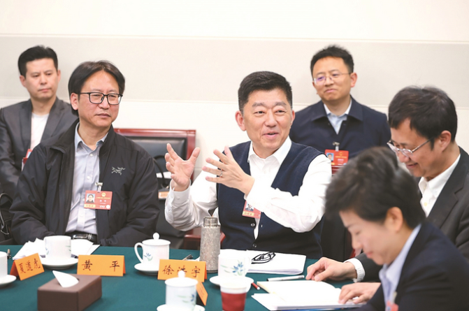 3月9日,十四届全国人大四次会议江苏代表团召开小组会议,审议全国人大常委会工作报告。 本报记者 吴胜 万程鹏 摄